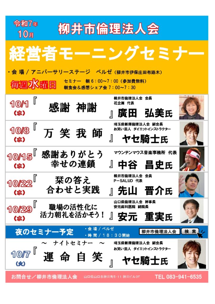 10月経営者モーニングセミナー 予定表