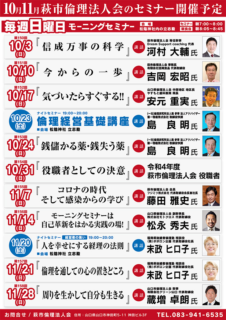 10月11月 萩市倫理法人会セミナー開催予定