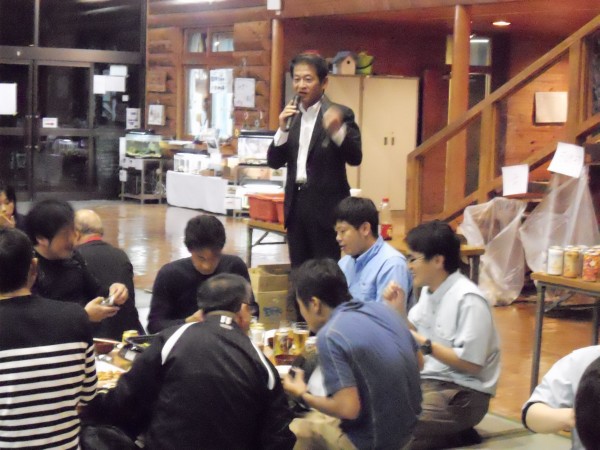 10/19(水) 会員交流大会 下関市中央倫理法人会所属 (株)FEEL 代表取締役 井上 桂 氏 テーマ: 「 つながりを考える 」 アウトドアの達人 井上講師により、たった30分のワークショップで、参加者40名の感心を惹きつけながら身体と頭のアイスブレイクを行って戴きました。 その後、松本相談役の乾杯で交流会の幕開きし、肉+魚介類のBBQ、トンちゃん鍋と盛上っていきながら 自己紹介、ボランティア活動や映画の紹介 ・・ 悪酔いミニライブ、そして 部屋呑みと こころの裃を外して 夜の更けるのも忘れて普段着の親睦を深めました。