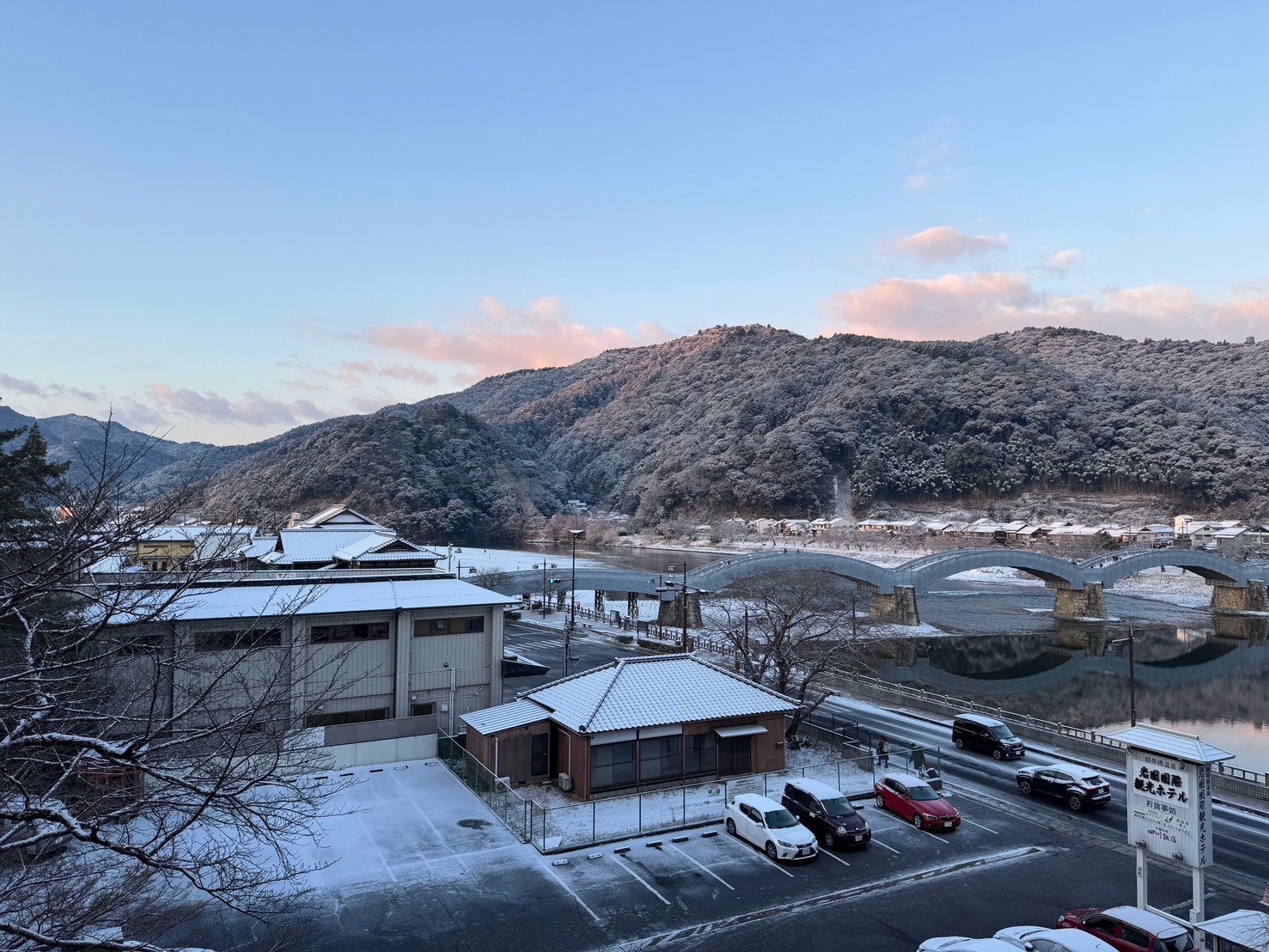 ここ数日の寒波で、錦帯橋も雪景色です。