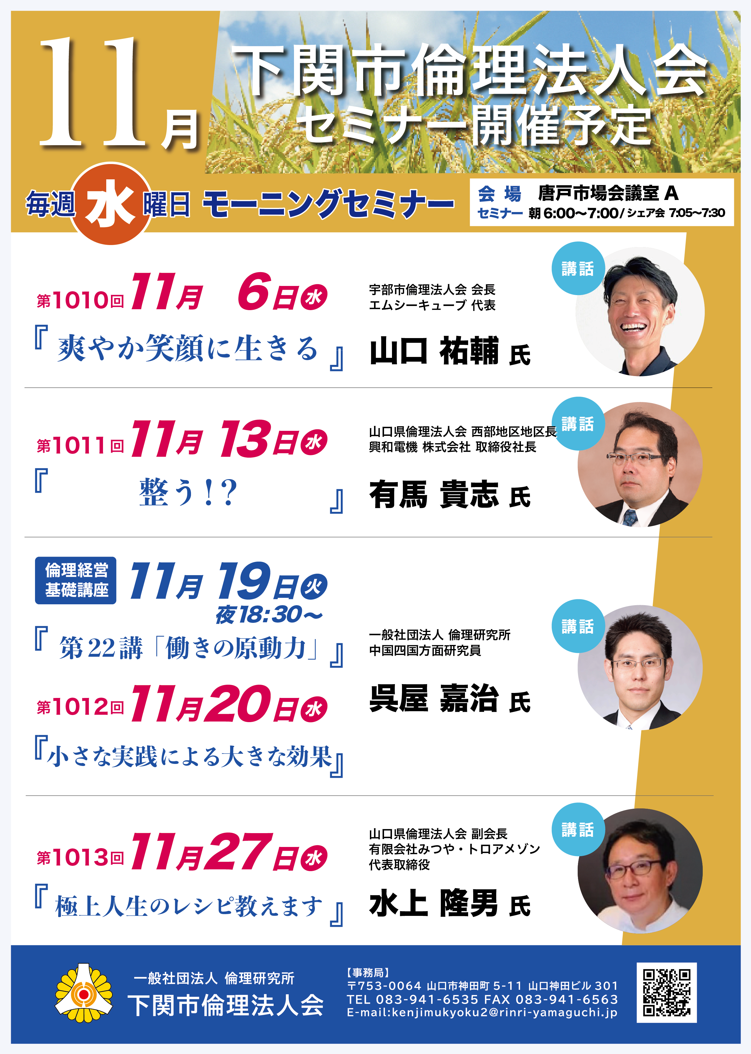 - Mセミナー第1010回 MS 講師:山口 祐輔 氏(宇部市倫理法人会 会長 / エムシーキューブ 代表) /テーマ:爽やか笑顔に生きる