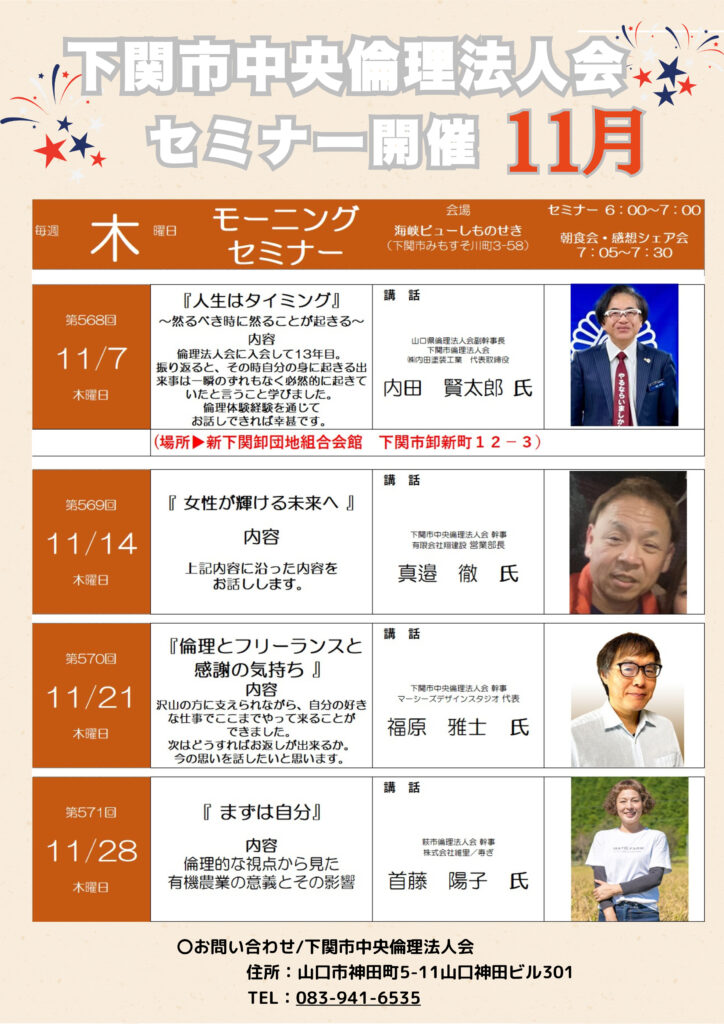 11月モーニングセミナー予定表