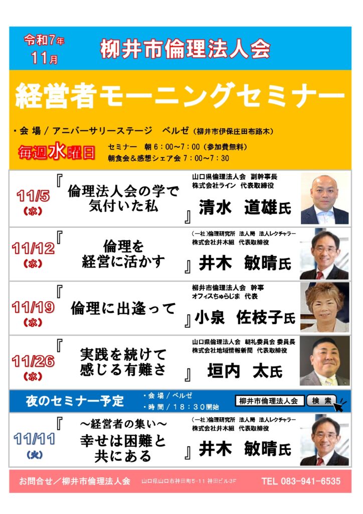 柳井市倫理法人会からのお知らせ