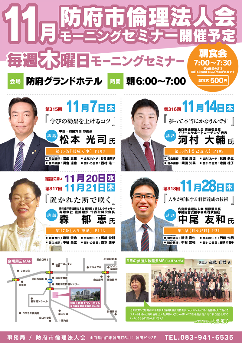 11月 防府市倫理法人会モーニングセミナー開催予定