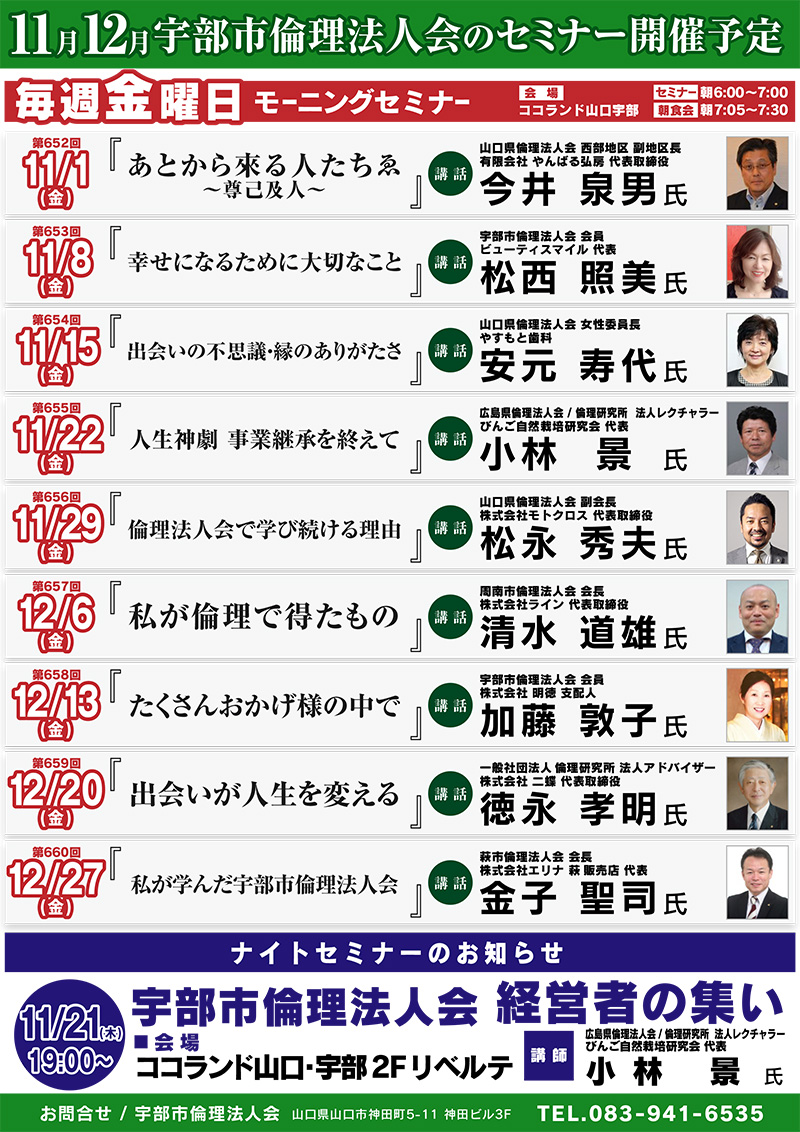 11月12月 宇部市倫理法人会モーニングセミナー開催予定