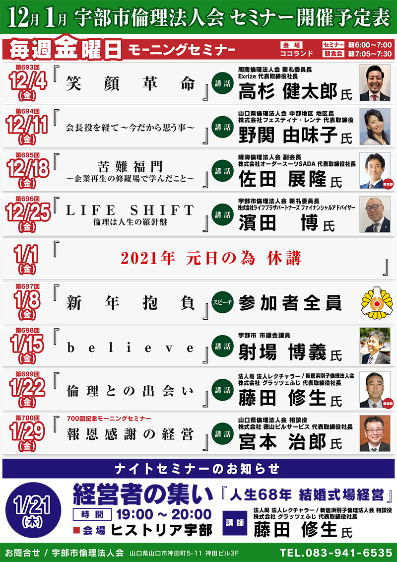 12月1月 宇部市倫理法人会モーニングセミナー開催予定