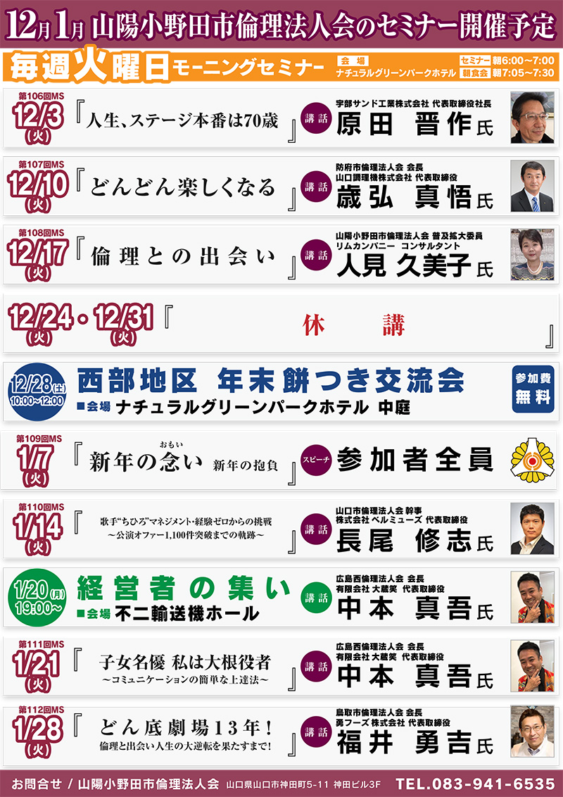 12月1月 山陽小野田市倫理法人会モーニングセミナー開催予定