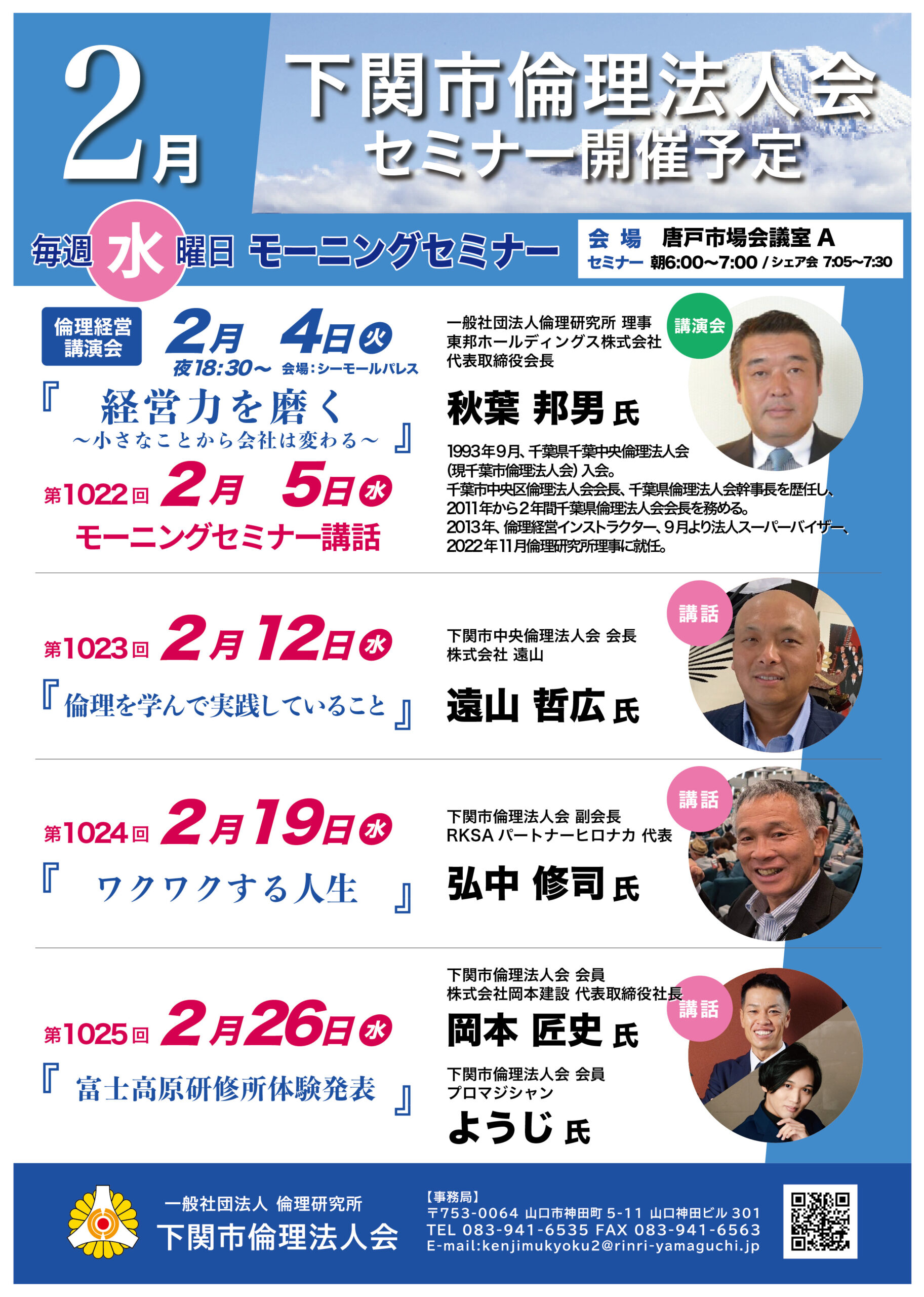 - Mセミナー第1023回 MS 講師:遠山 哲広 氏(下関市中央倫理法人会 会長 / 株式会社 遠山) /テーマ:倫理を学んで実践していること