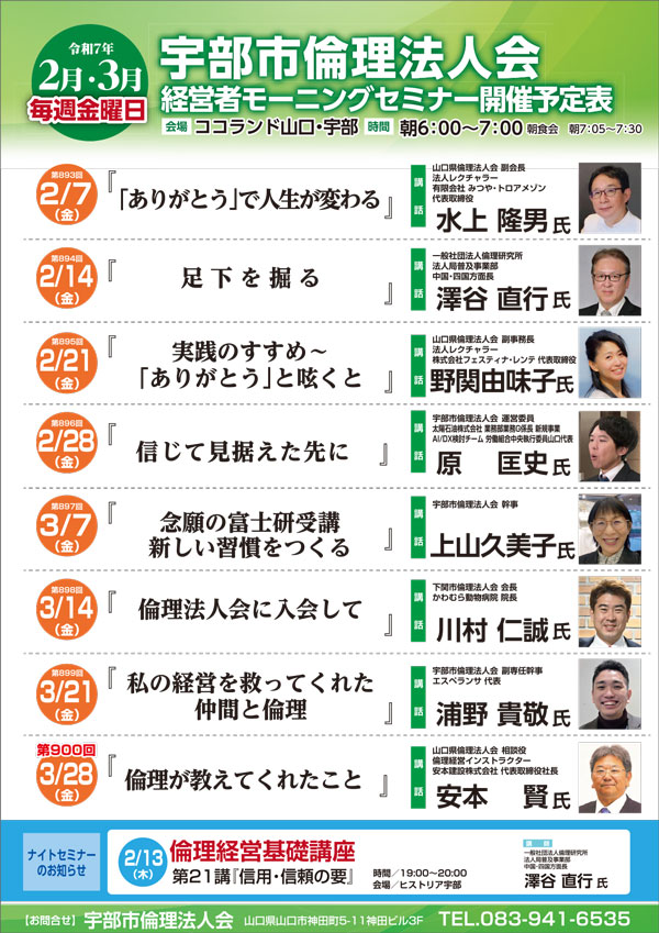 毎週金曜日、朝 6:00 〜 7:00 ココランド宇部にてモーニングセミナーを開催しています!