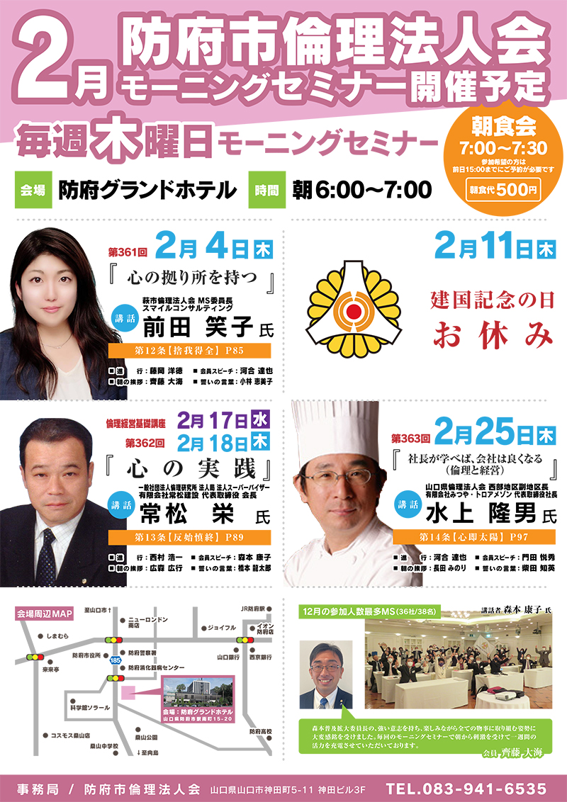 2月 防府市倫理法人会モーニングセミナー開催予定