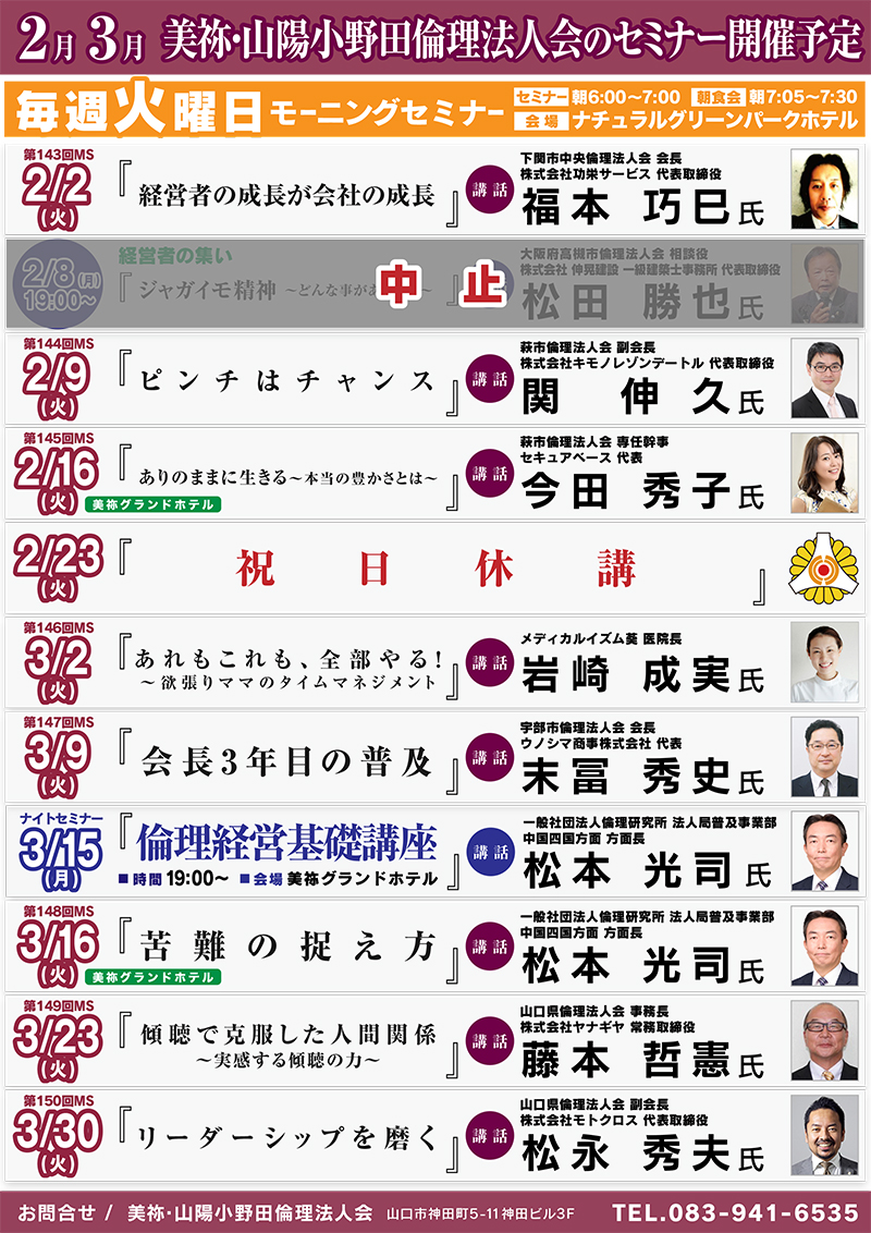2月3月 美祢・山陽小野田倫理法人会モーニングセミナー開催予定