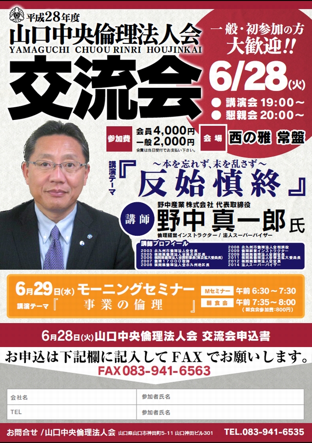 平素より山口中央倫理法人会の活動に多大なご支援ご協力を賜り篤く御礼申し上げます。