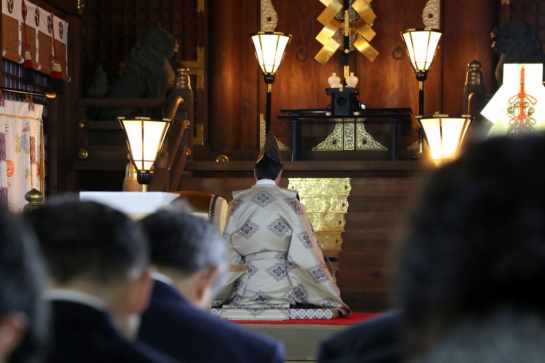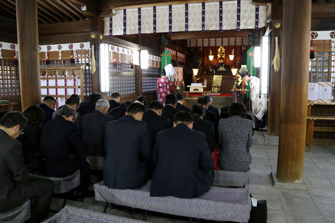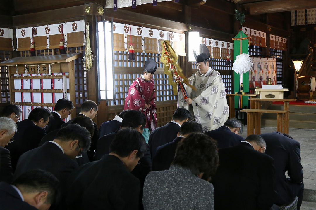周南倫理法人会 副会長でもある黒神 直大宮司にご祈祷いただき、山口県倫理法人会会員の皆様の繁栄と