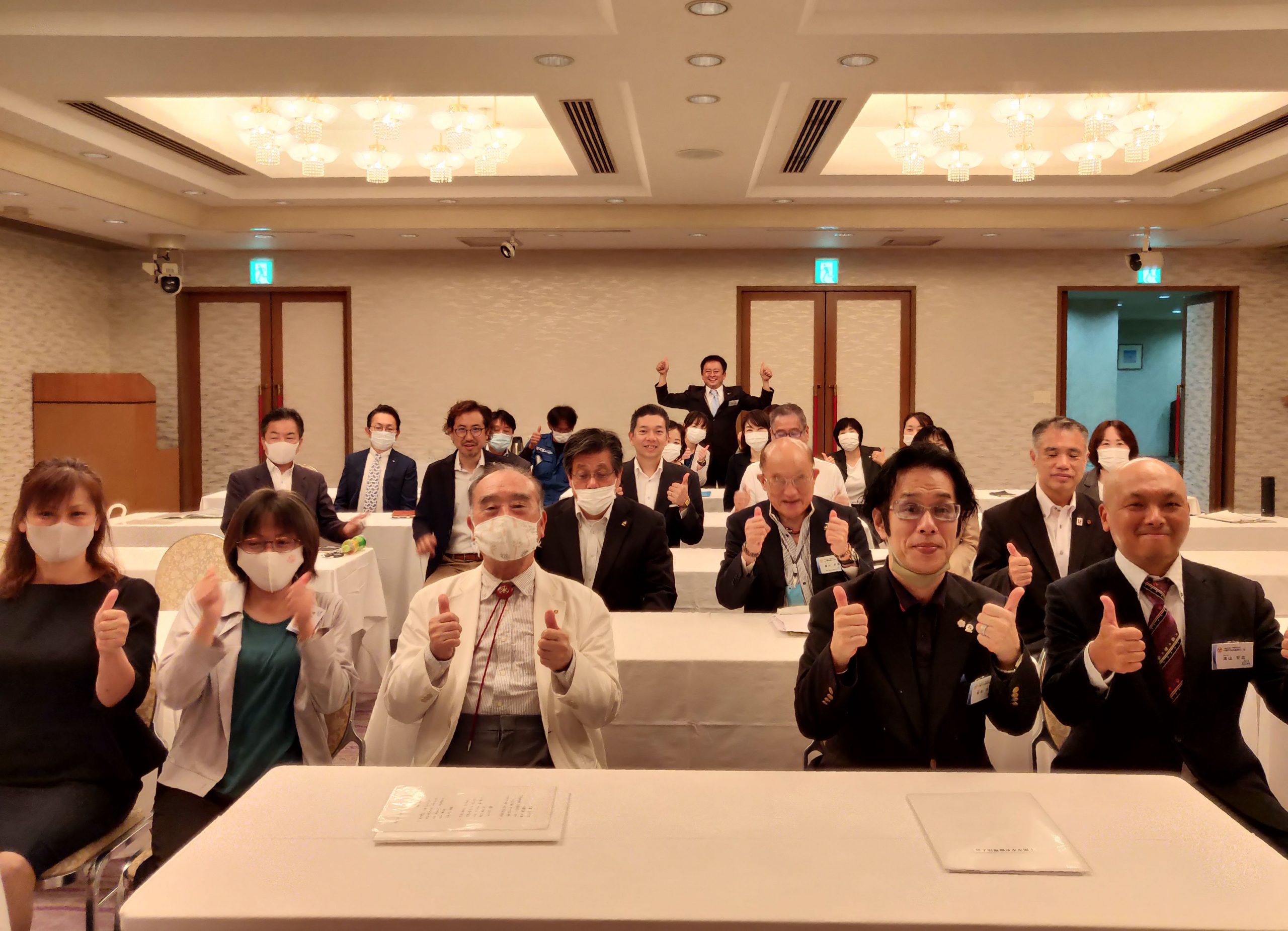 スピーチ…沖野美和子 女性委員長、岡藤義昭 研修委員長、(小嶺弘晃 事務長)