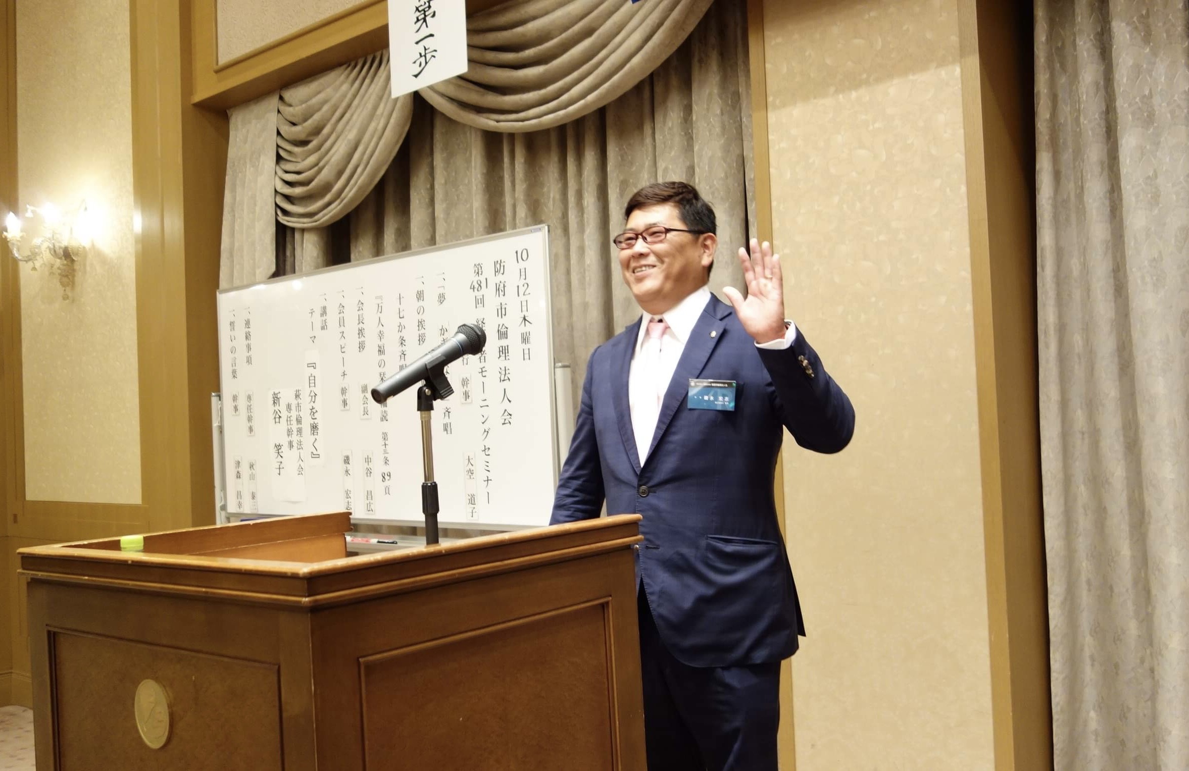 ご講話では、倫理法人会に通い続ける理由、お持ちの人生観、決意をお話いただきました。