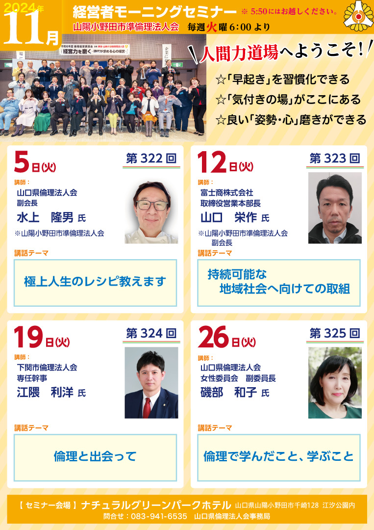 2024年11月 山陽小野田市準倫理法人会のセミナー開催予定