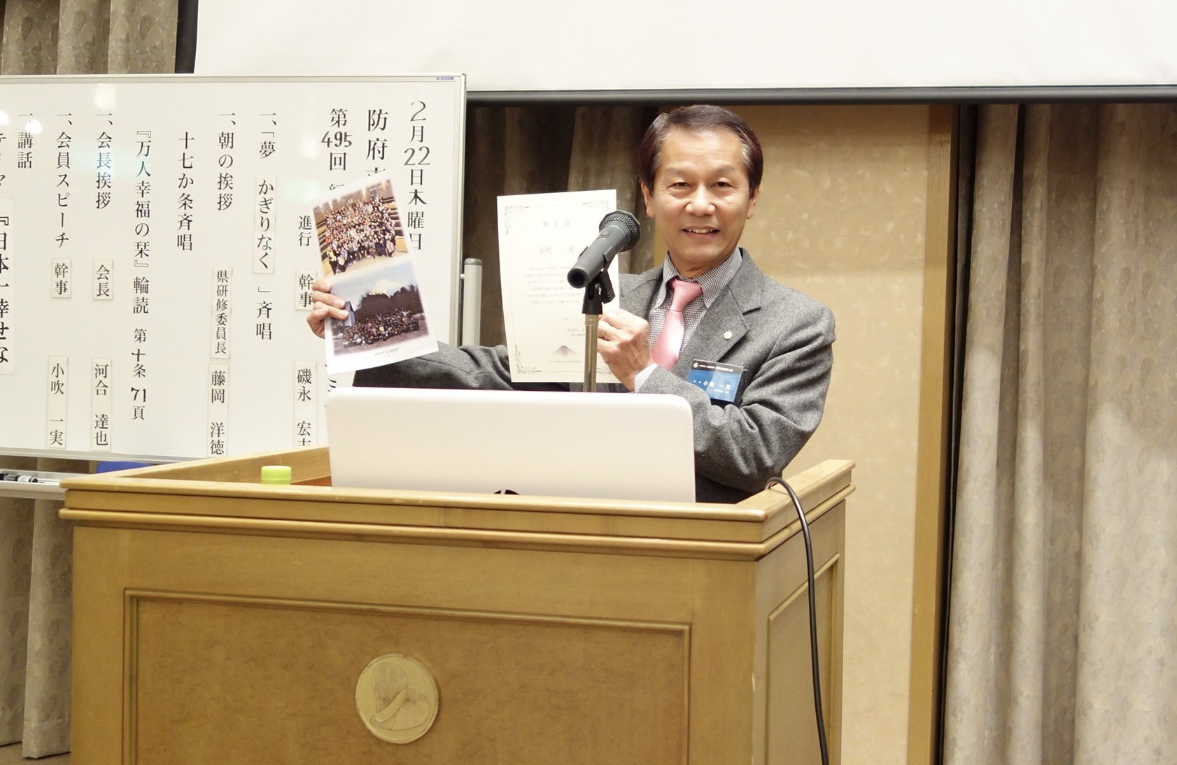 【講話:山口市倫理法人会 会長 特定非営利活動法人おひさまランド 理事長 平岩 陽子氏】