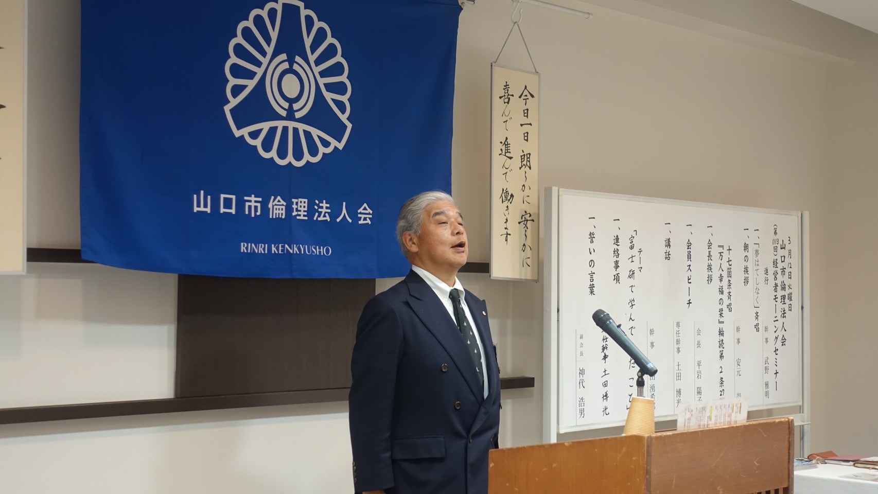 2001年8月に設立されて以来のこの山口市倫理法人会をこれからも「つなぐ心」が普及につながると思います。