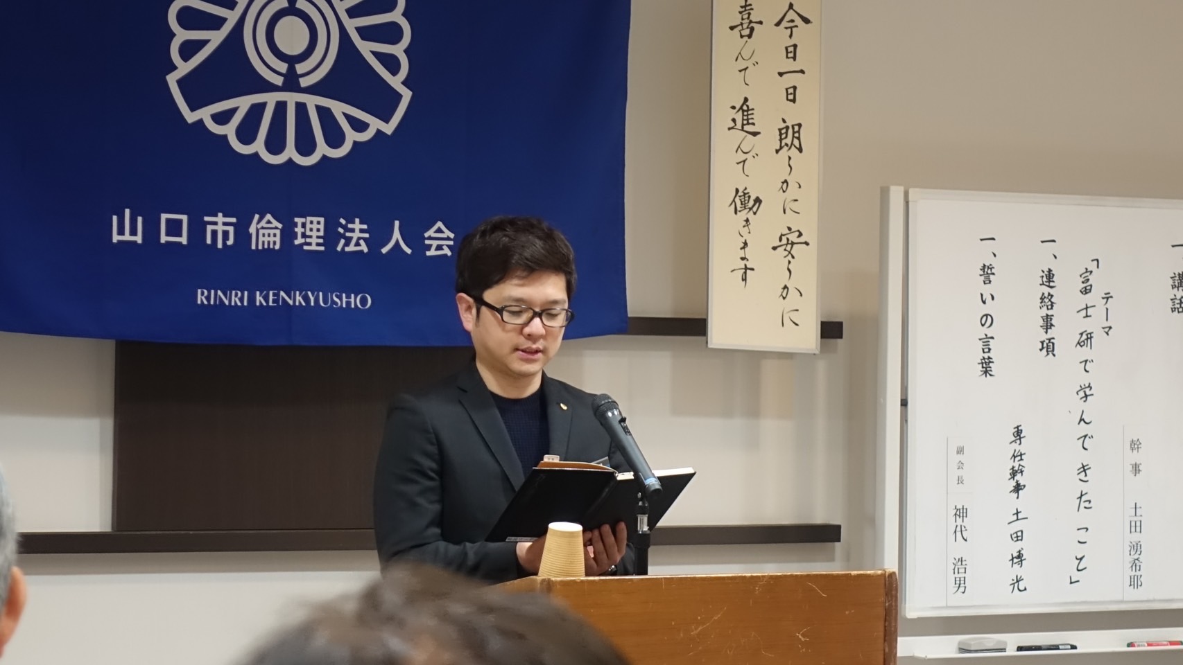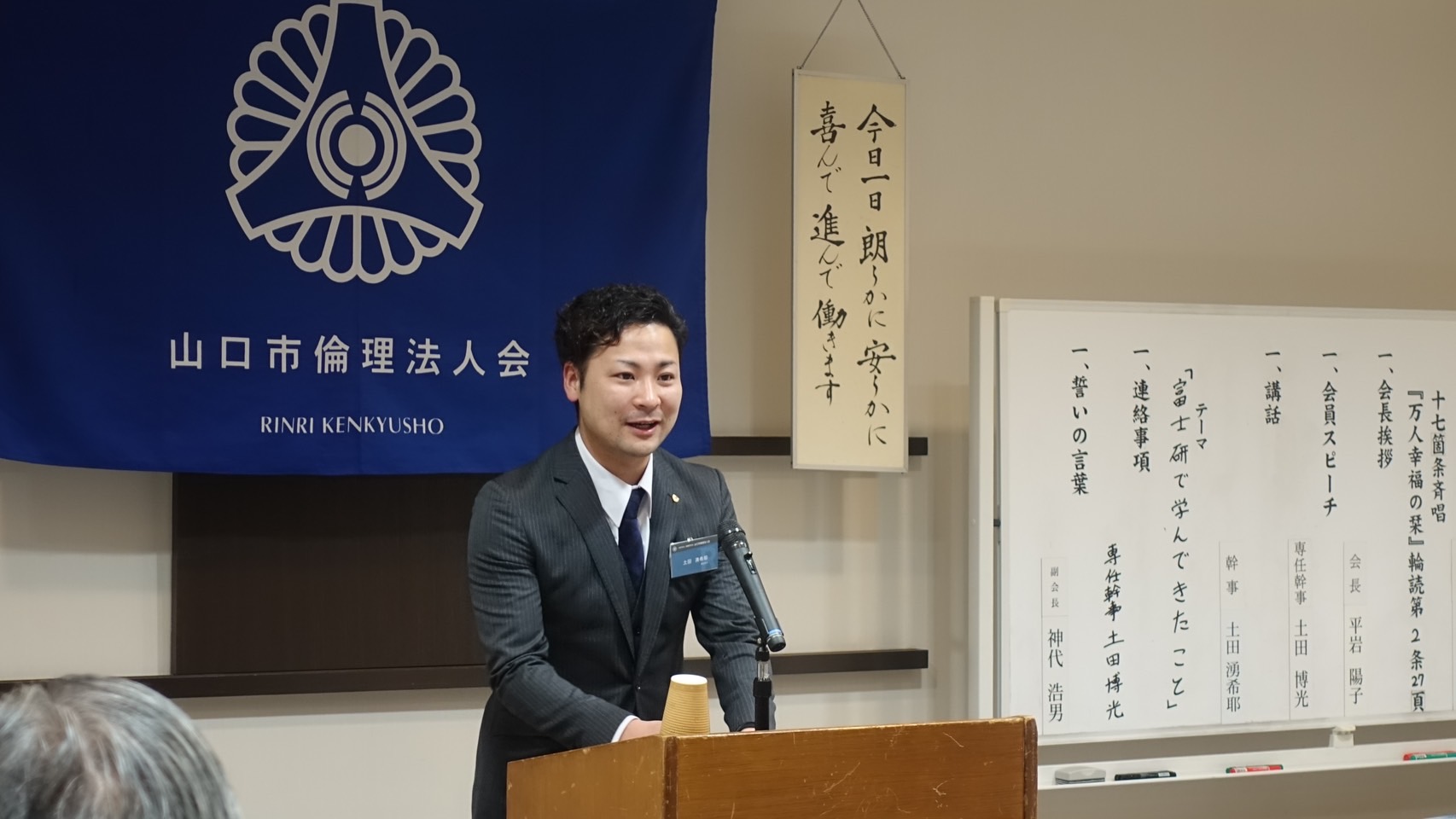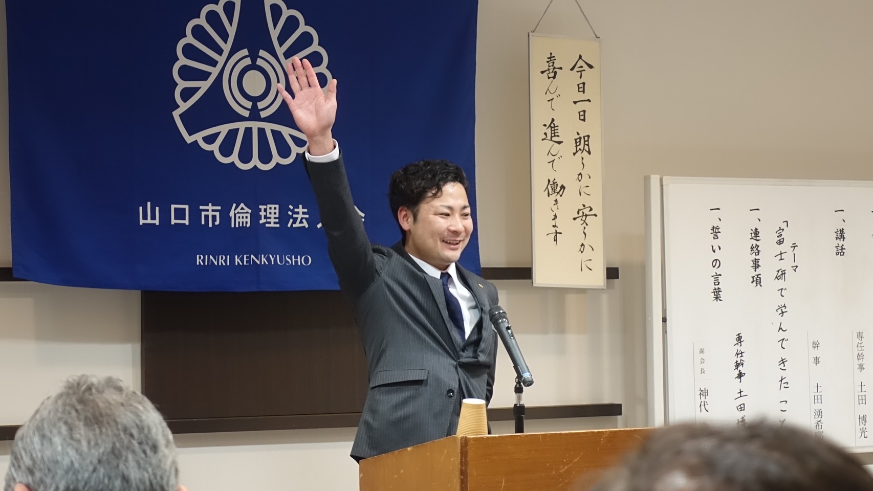 2024年3月12日(火) 2024年3月12日(火) 第1113回 MS 山口市倫理法人会 会員/株式会社 Place De Smiley  土田 湧希耶 氏  テーマ:『富士研で学んできたこと』
