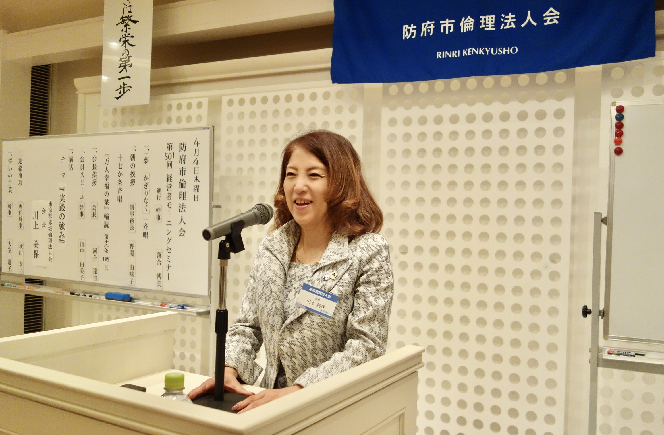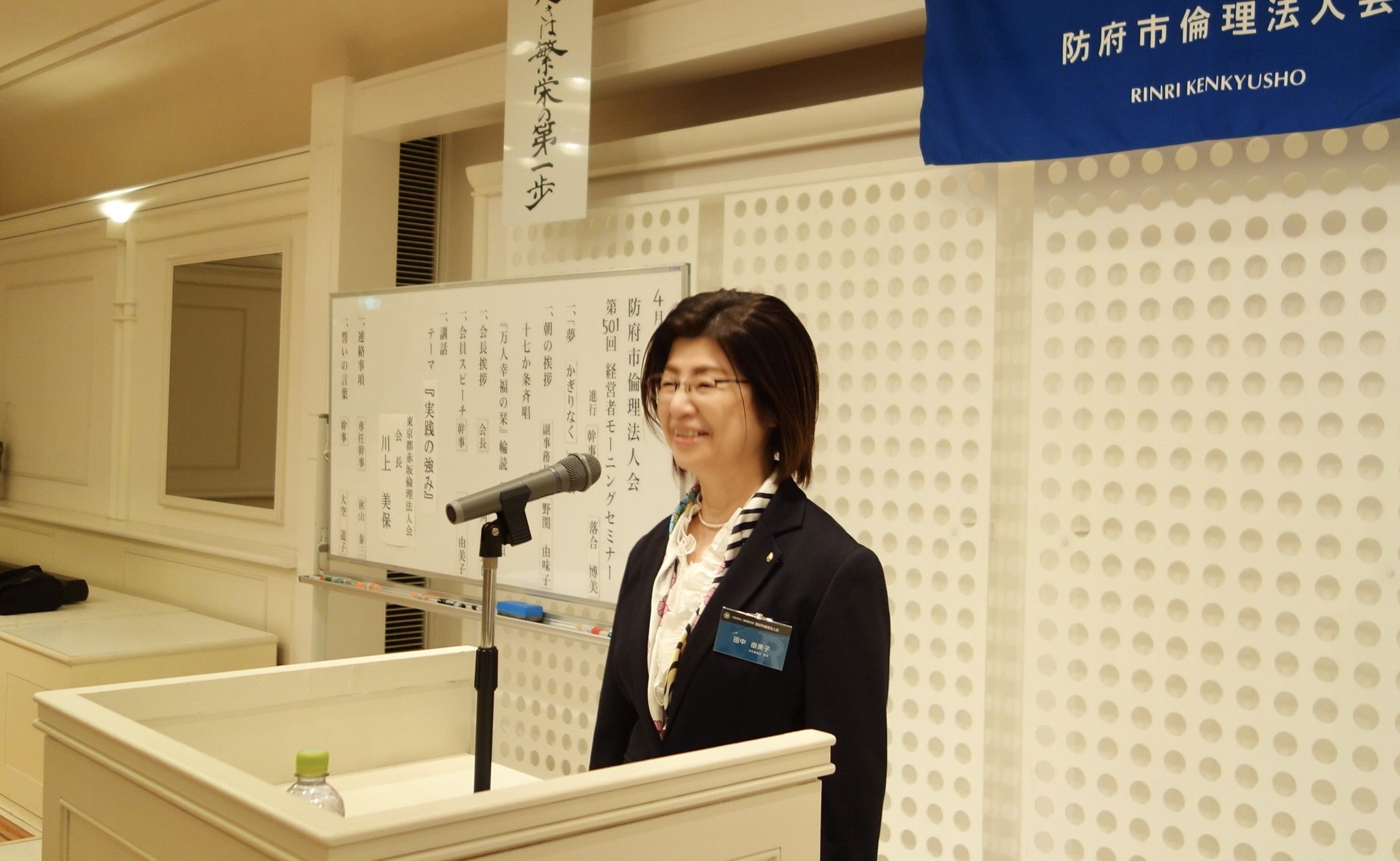 【講話:東京都赤坂倫理法人会 会長 (有)オフィスフォーハウト 代表取締役 川上美保氏】