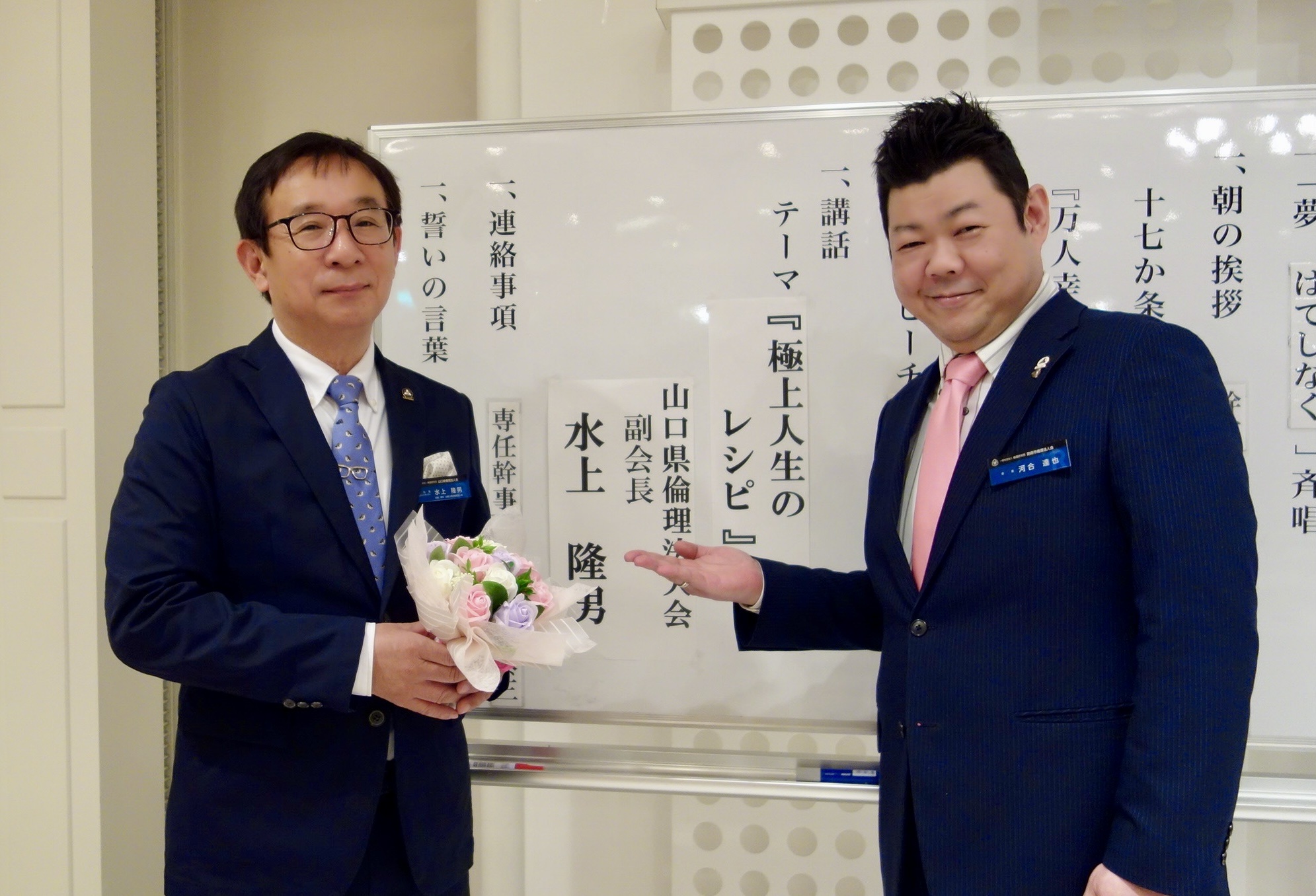 【講話:山口県倫理法人会 副会長 有限会社 みつや・トロアメゾン 代表取締役社長 水上隆男氏】