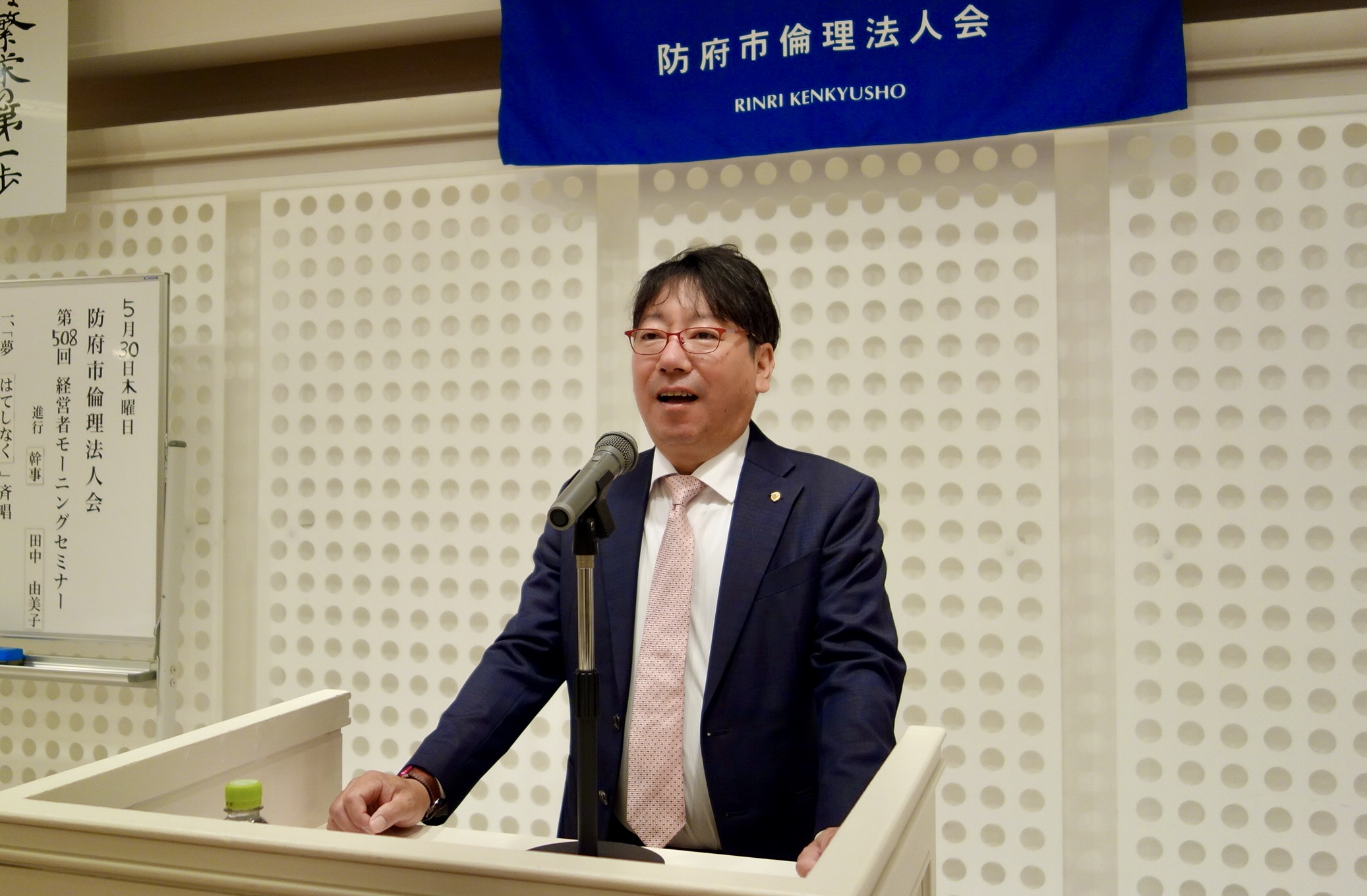 2024年6月1日(土) 2024年5月30日(木)第508回 講師:防府市倫理法人会 幹事 津森鉄工有限会社 代表取締役 津森昌幸氏 テーマ:愛と倫理