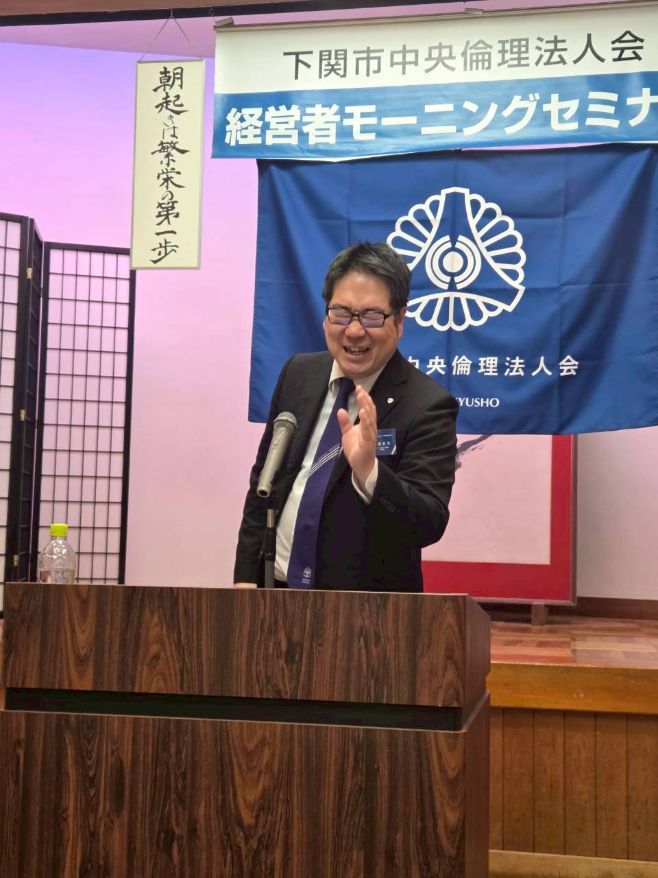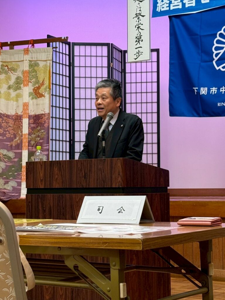 下関市倫理法人会 幹事 牧野武志 氏に、「しくじりんり先生~俺みたいになるな~」をテーマに御講話いただきました。