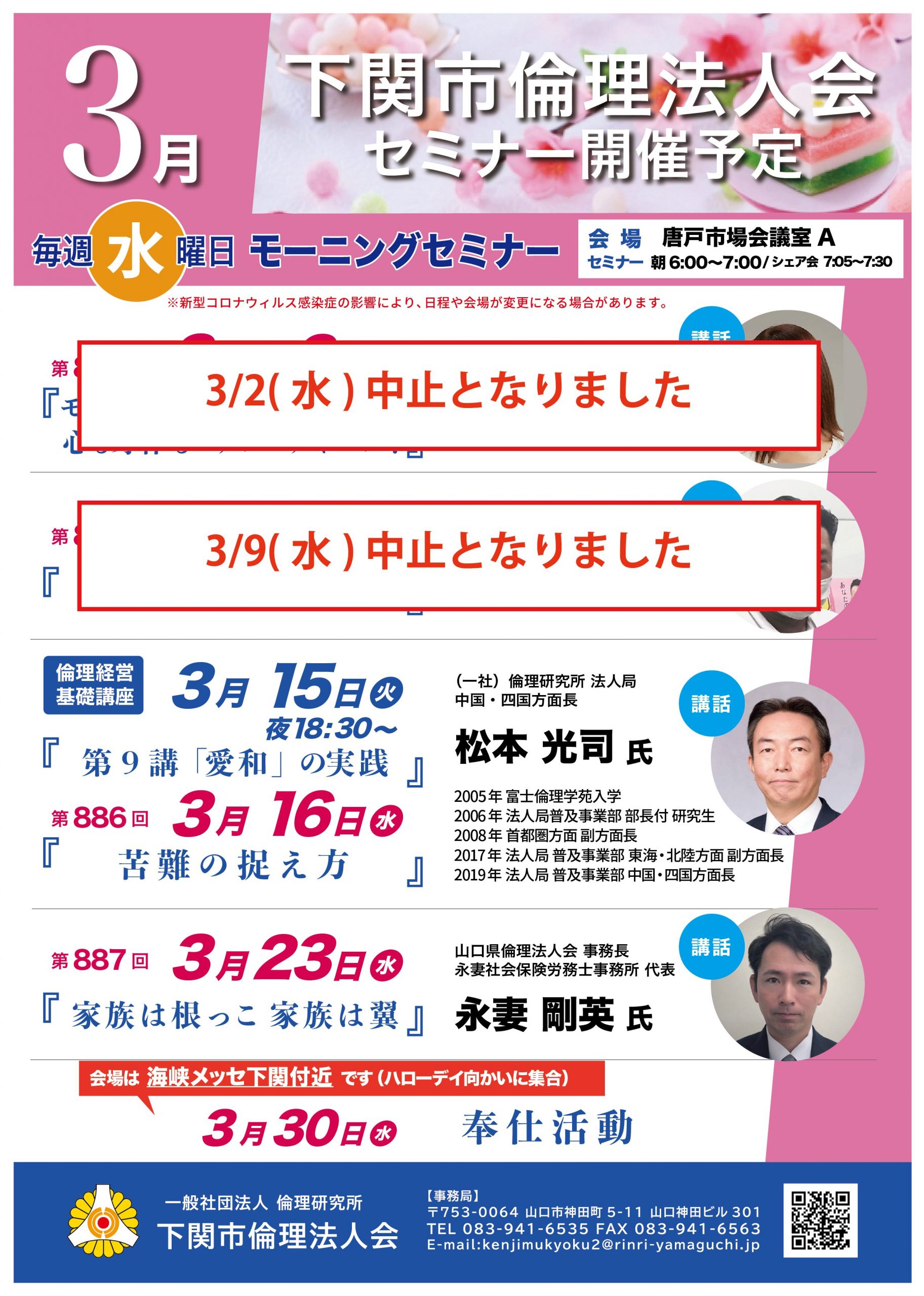 - Mセミナー(※中止)第884回 MS 講師:中尾 崇子 氏(宇部市倫理法人会 会長 / 株式会社SHO-KI 代表取締役専務)/テーマ:モーニングセミナーで心も身体もエナジーチャージ!