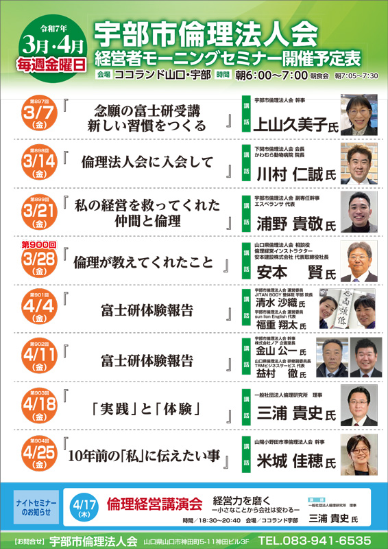 毎週金曜日、朝 6:00 〜 7:00 ココランド宇部にてモーニングセミナーを開催しています!