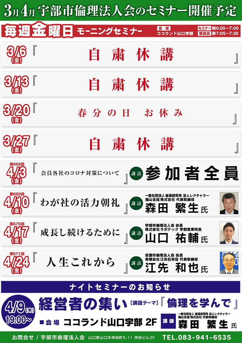 3月4月 宇部市倫理法人会モーニングセミナー開催予定
