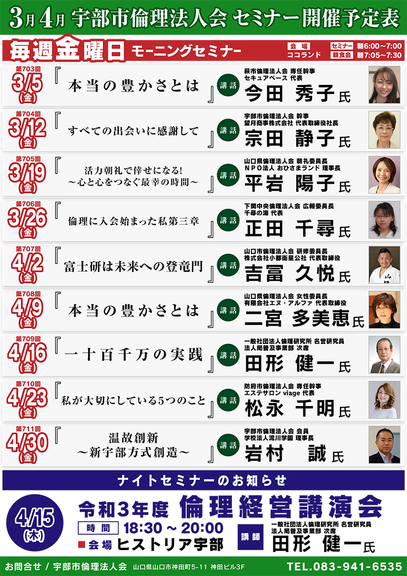 3月4月 宇部市倫理法人会モーニングセミナー開催予定