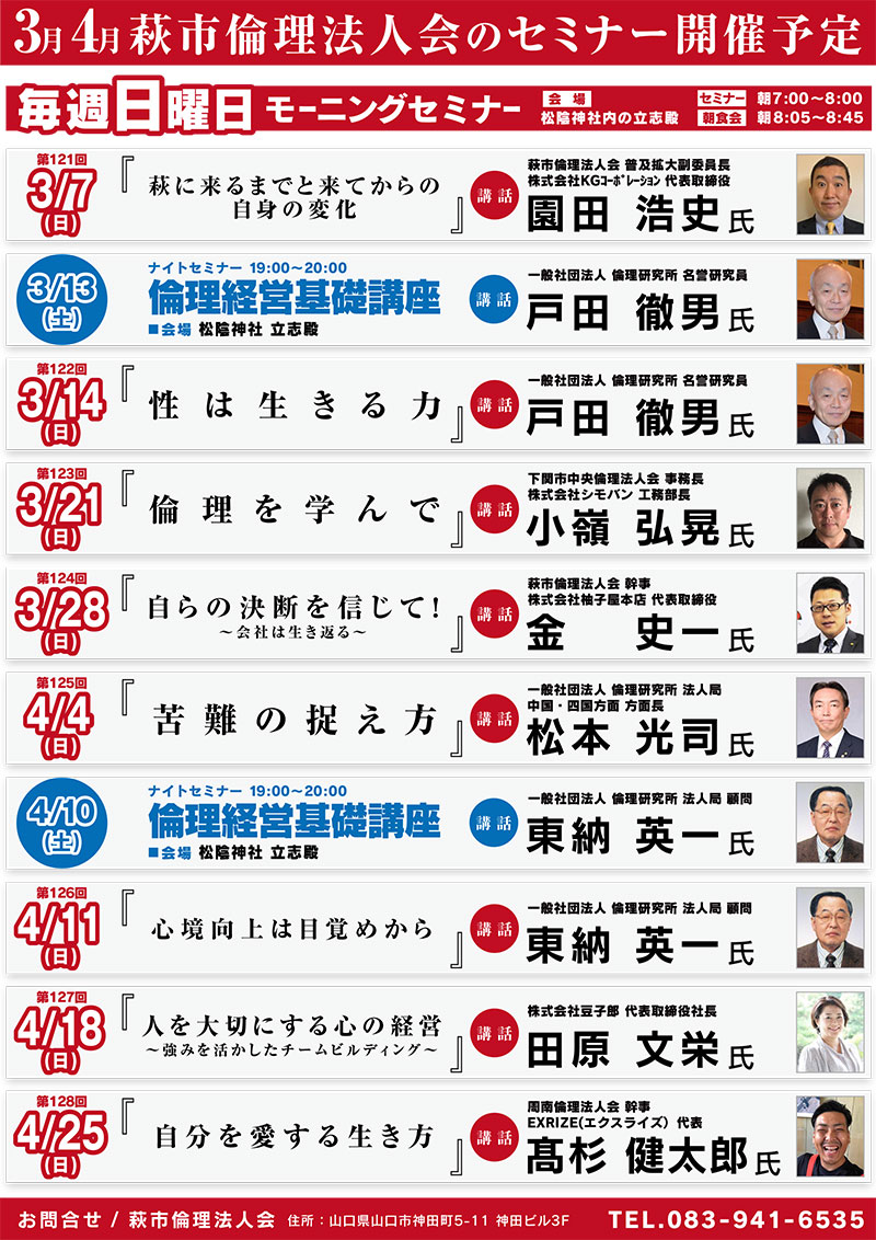 3月4月 萩市倫理法人会モーニングセミナー開催予定