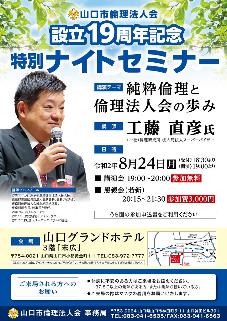 2020年8月24日(月) 山口市倫理法人会設立19周年記念モーニングセミナー