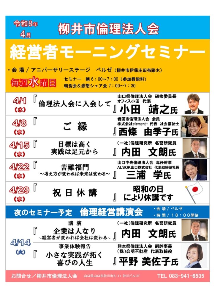 柳井市倫理法人会からのお知らせ