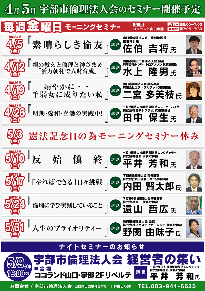 4月5月 宇部市倫理法人会モーニングセミナー開催予定