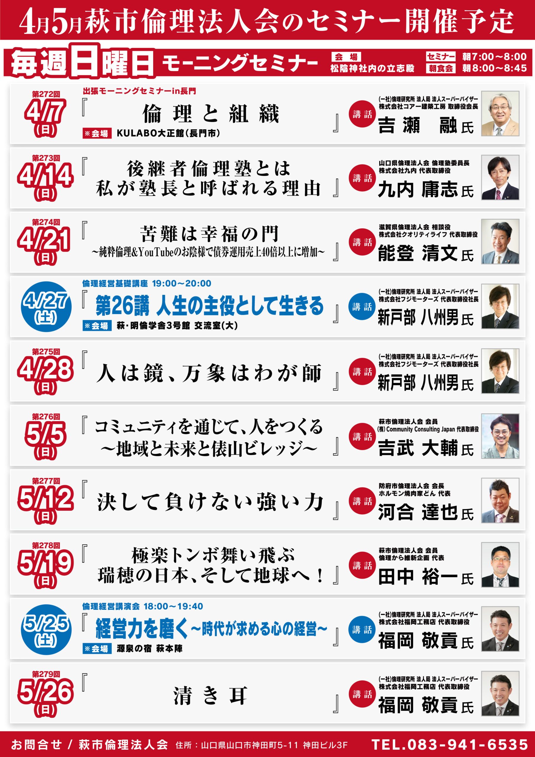 毎週日曜日、朝 7:00 〜 8:00 松陰神社 立志殿にて