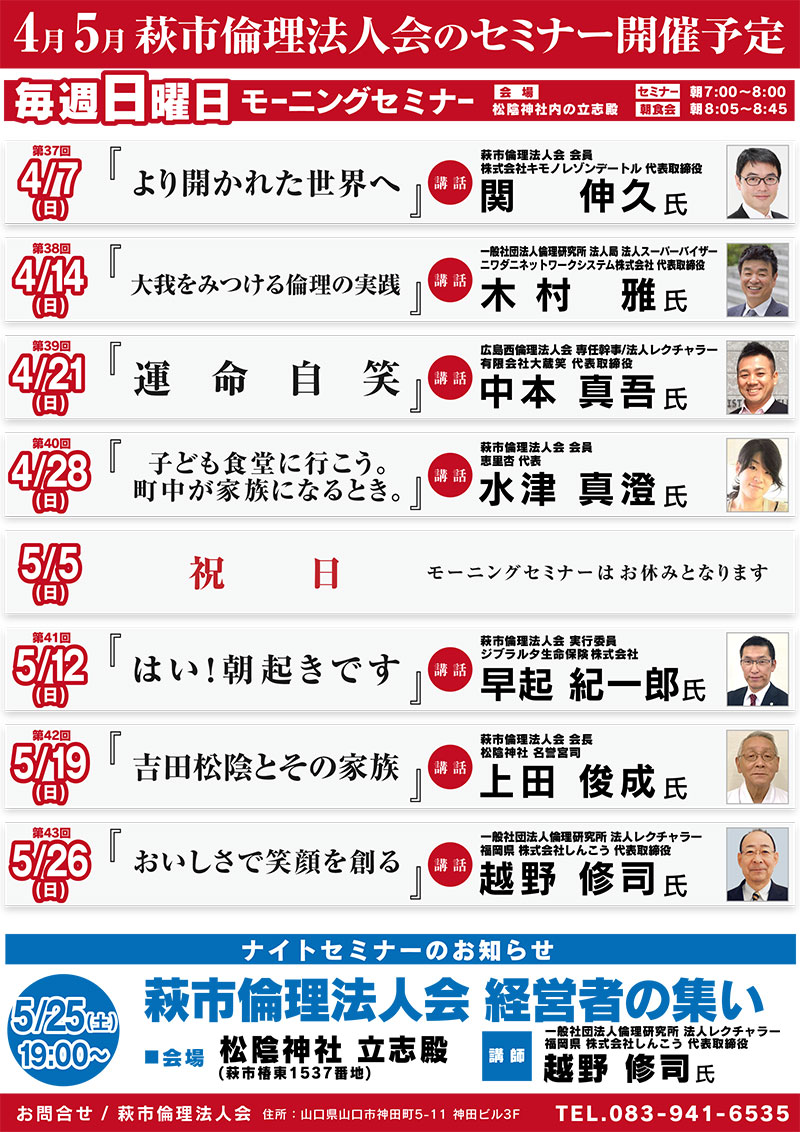 4月5月 萩市倫理法人会モーニングセミナー開催予定