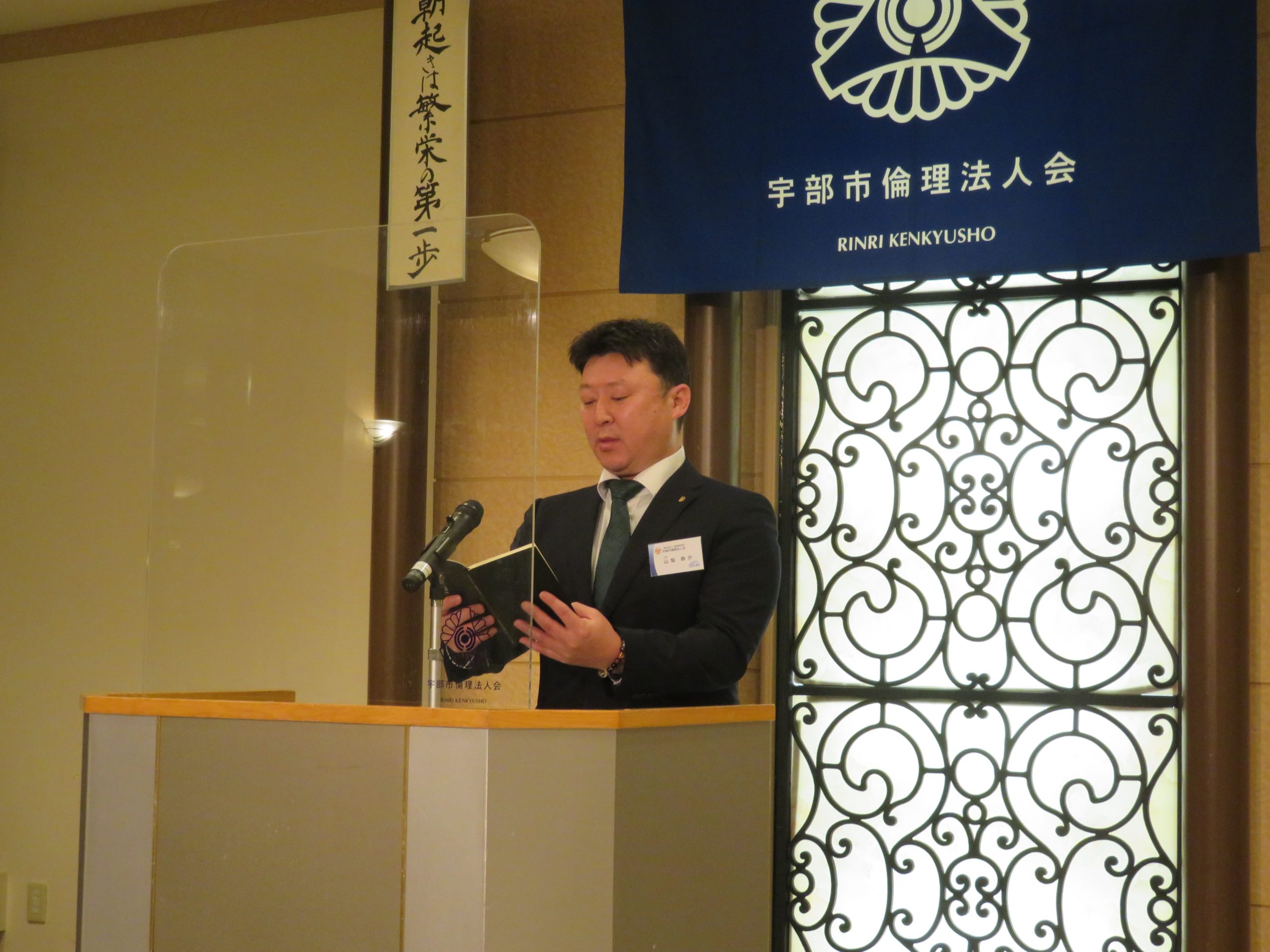 結婚を期に、縁があって宇部市で仕事をすることとなった。そして倫理に出会う。この縁を大切に倫理を学んでいきたいというお話をされました。