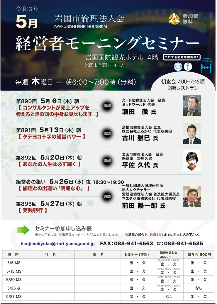 5月岩国市倫理法人会モーニングセミナー開催予定