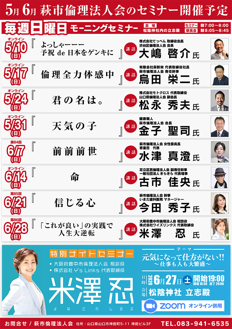 5月6月 萩市倫理法人会モーニングセミナー開催予定