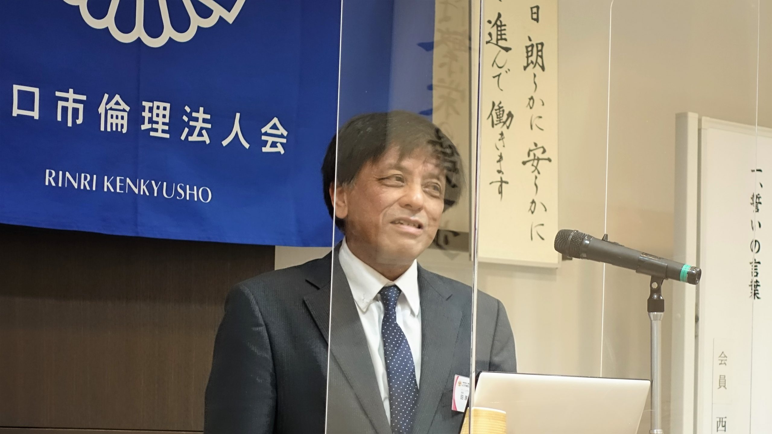 会員スピーチ:田原靖昭幹事: 普及は、純粋倫理を心に留めて伝えています。純粋倫理が広まれば紛争が無くなり世の中が良くなると信じています。
