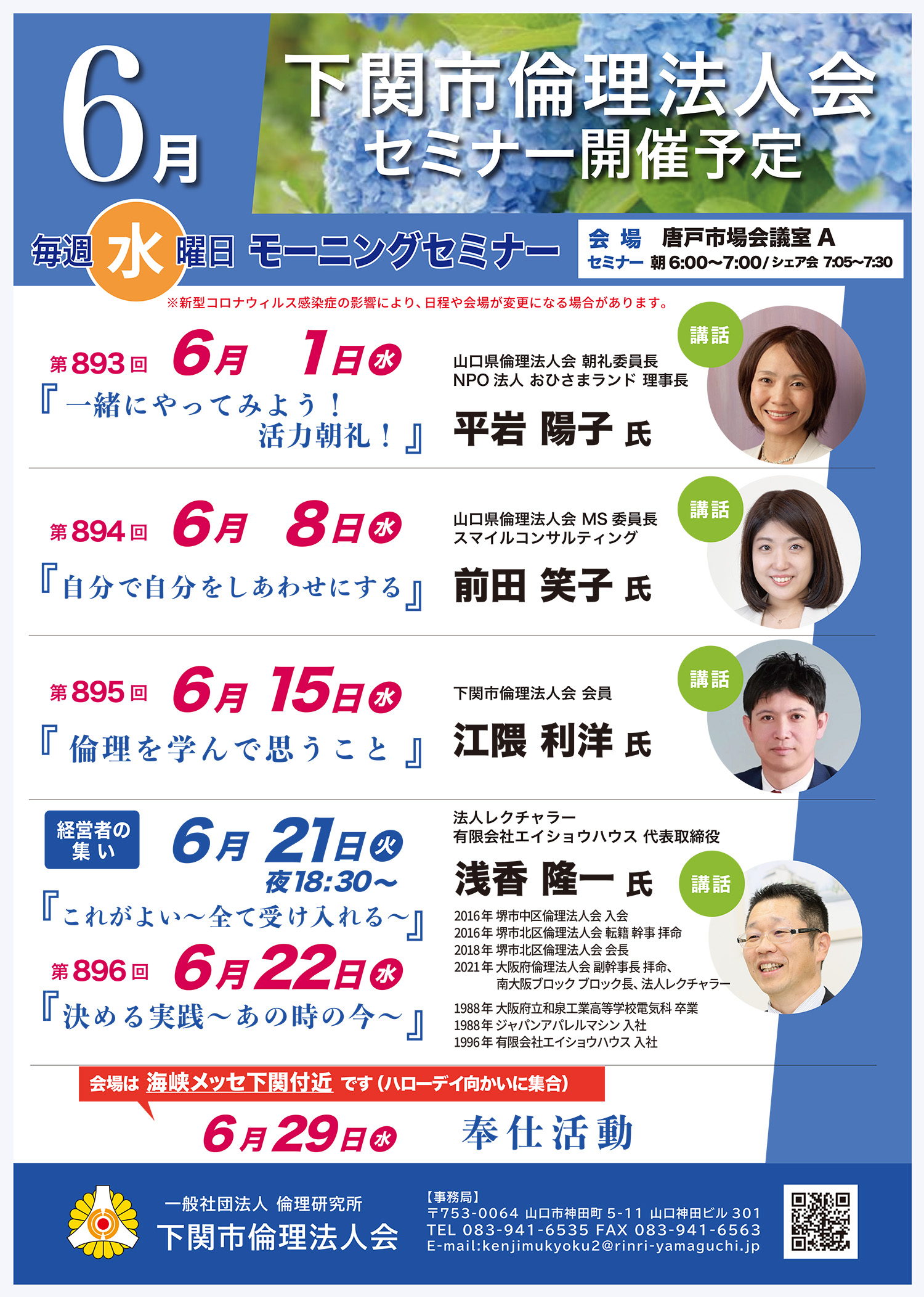 - Mセミナー第895回 MS 講師:江隈 利洋 氏(下関市倫理法人会 会員)/テーマ:倫理を学んで思うこと