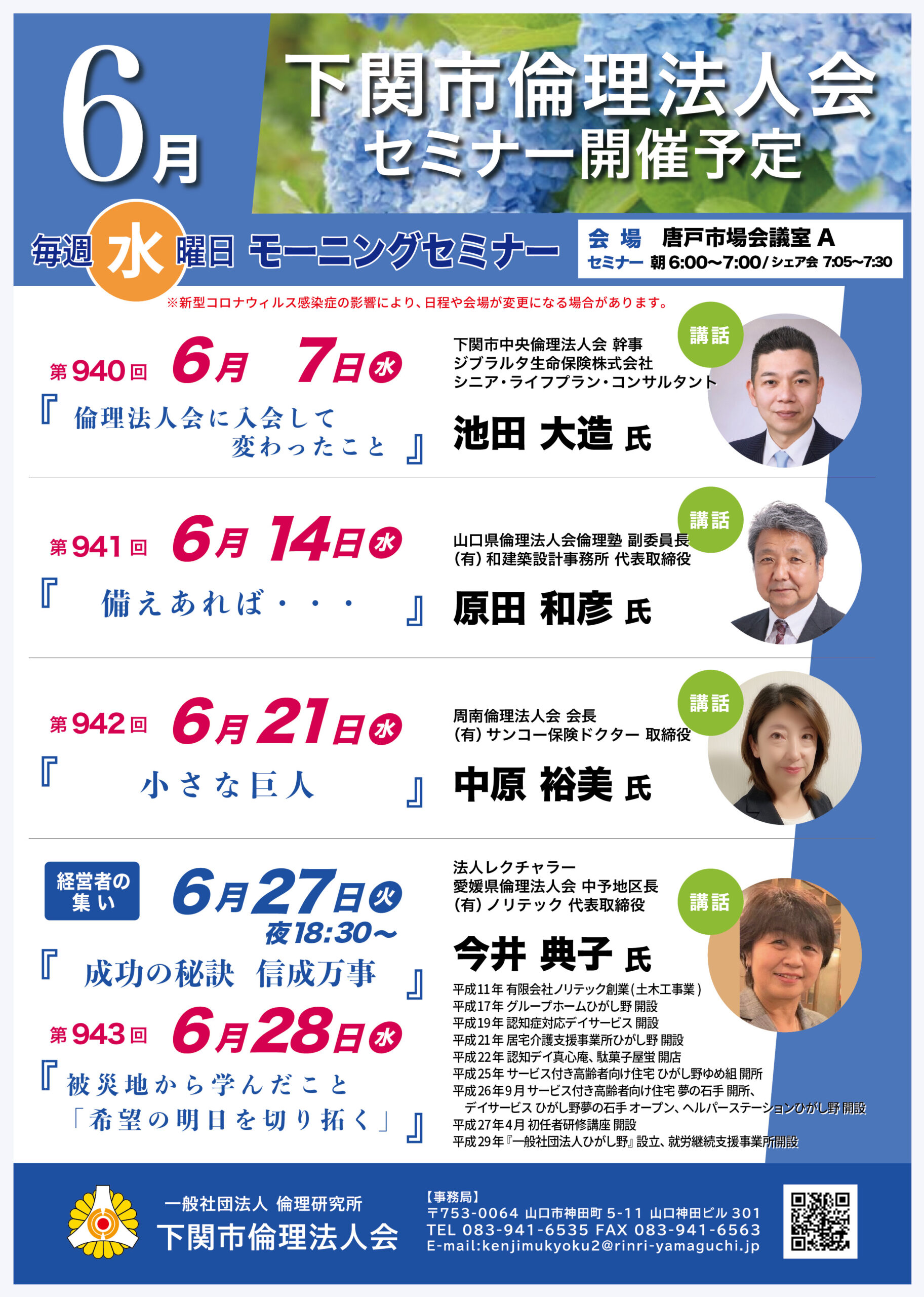 Mセミナー第940回 MS 講師:池田 大造 氏(下関市中央倫理法人会 幹事 / ジブラルタ生命保険株式会社 シニア・ライフプラン・コンサルタント)/テーマ:倫理法人会に入会して変わったこと