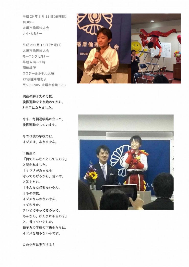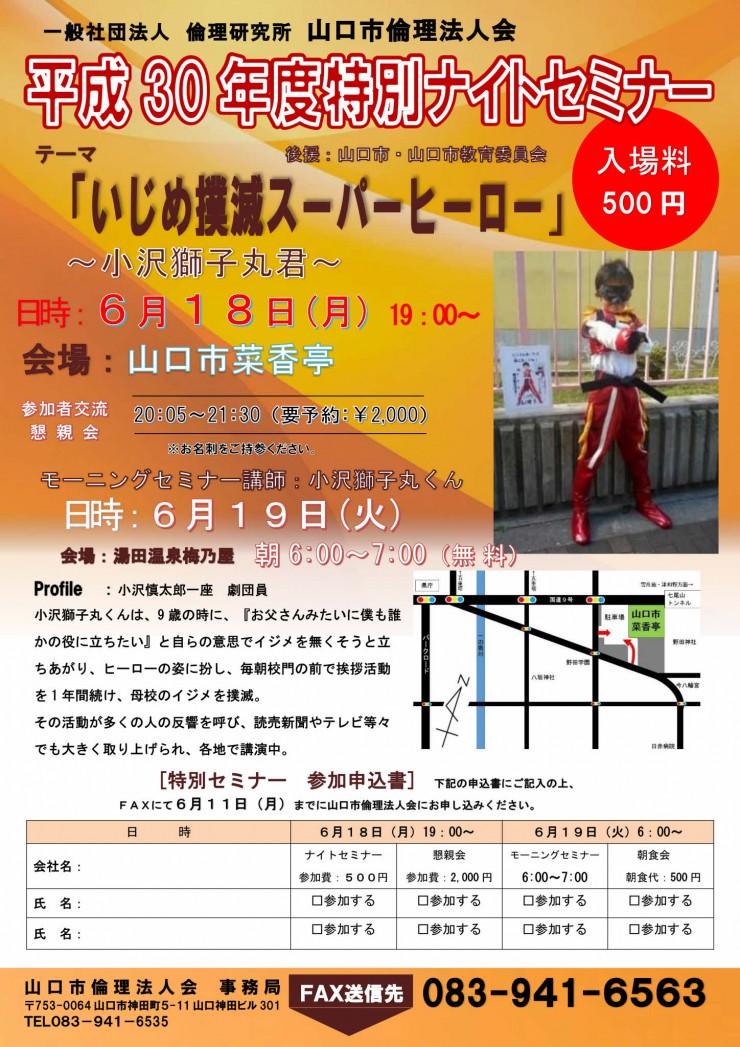 第823回MS 平成30年度特別ナイトセミナー『いじめ撲滅スーパーヒーロー』 講師:小沢 獅子丸君