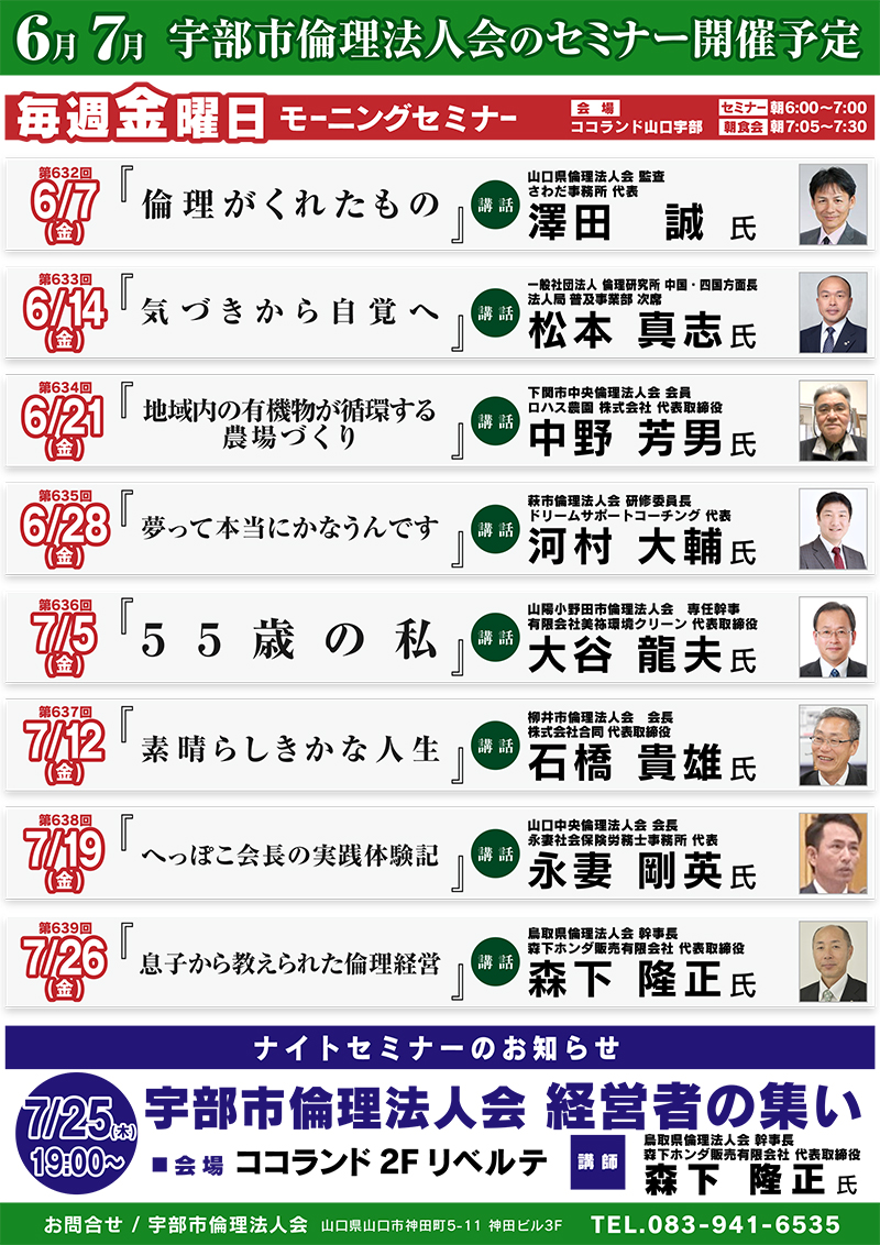 6月7月 宇部市倫理法人会モーニングセミナー開催予定