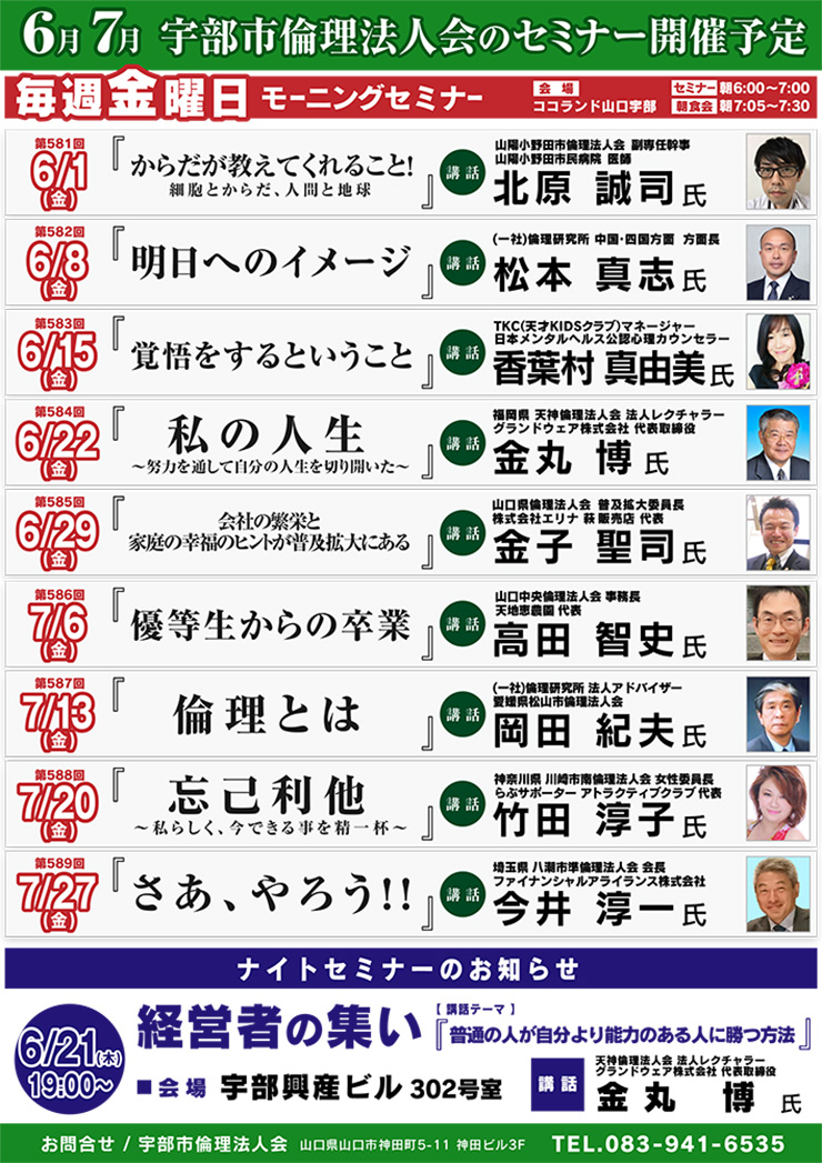 6月7月 宇部市倫理法人会モーニングセミナー開催予定