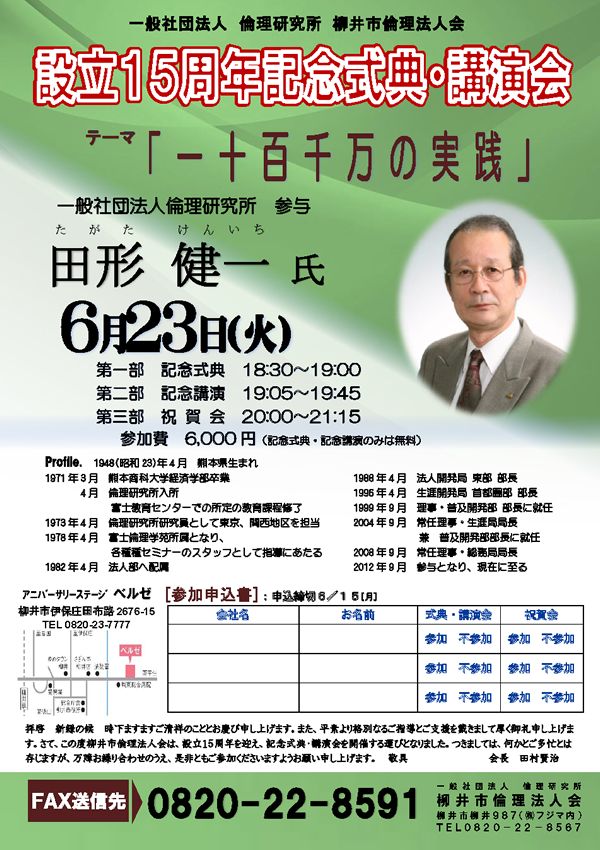 6/23 15周年記念式典、記念講演「一十百千万の実践」