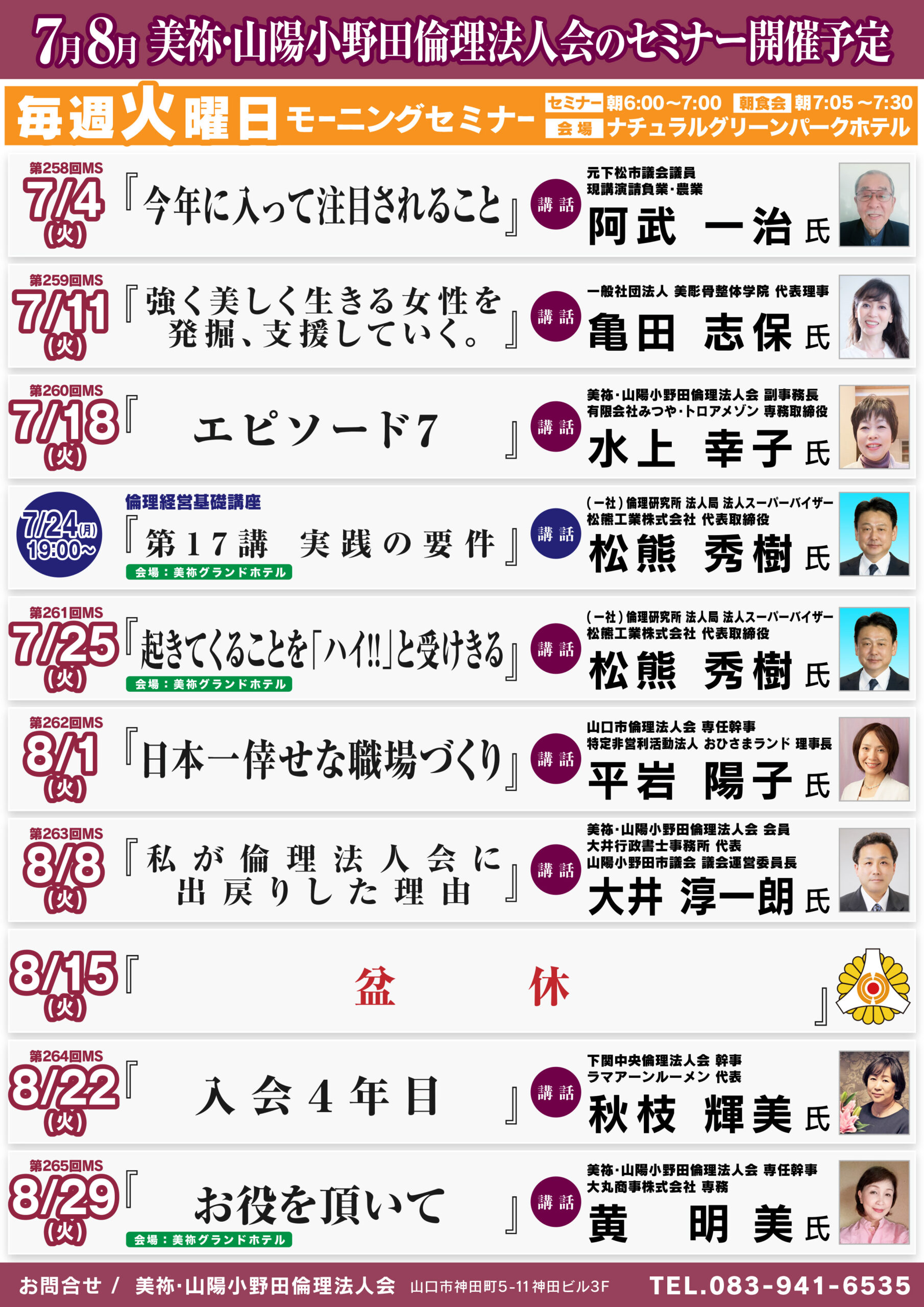 7月8月 美祢・山陽小野田倫理法人会のセミナー開催予定