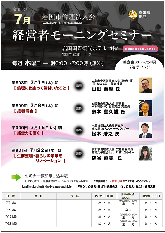 7月岩国市倫理法人会モーニングセミナー開催予定