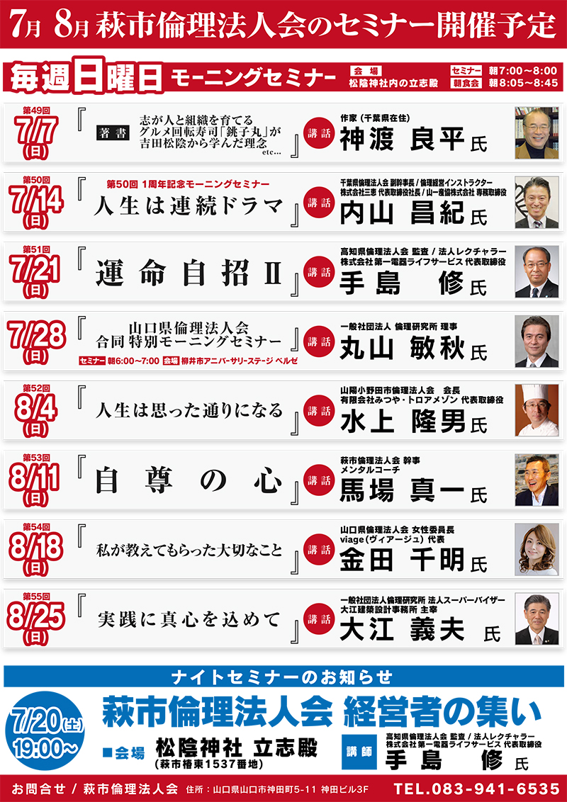 7月8月 萩市倫理法人会モーニングセミナー開催予定